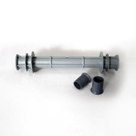 Een afstandsbus met rozet is een buis die wordt gebruikt in betonbekisting om de juiste afstand tussen bekistingswanden te garanderen. De rozetten aan beide uiteinden zorgen voor extra stabiliteit en maken het eenvoudiger om de bekistingselementen stevig op hun plaats te houden.